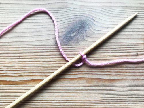 Maak een lusje van het garen, haal daar de draad doorheen en zet die op de naald. Zo, steek nummer één staat.