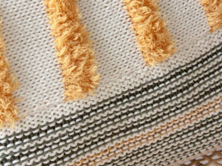 De kwastjes aan de zijkanten zorgen voor een bohemian look. En de strepen zijn helemaal van nu.