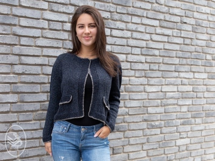 - Maasnaald om draadjes weg te werken en handig is een schaar, centimeter, spelden en matten om te blocken.