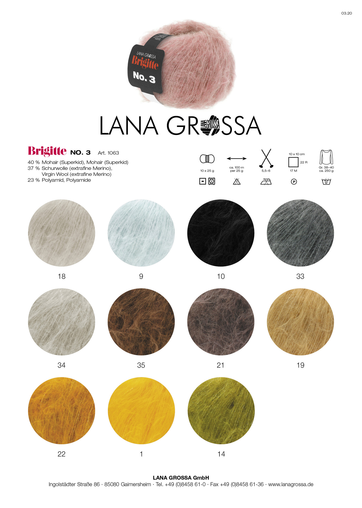 Dit zachte samengestelde garen heeft een zachte finish. De Brigitte NO.3 is een combinatie van Mohair, Merino en Polyamide. Je maakt de mooiste truien en vesten met een pluizig eindresultaat.