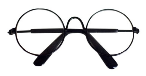 Dit brilletje heeft glazen in een goudkleurig montuur met zwarte, inklapbare pootjes. Het staat heel erg leuk op zelfgemaakte poppen.