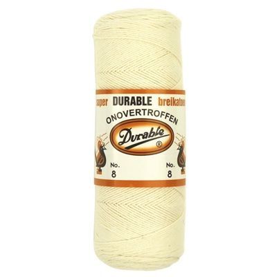 Durable Breikatoen No. 8 is een ongebleekt garen van 100% katoen. Dit traditionele garen van het vertrouwde merk Durable is geschikt voor al uw fijne haakwerken als gordijnen, kleden, kussens en andere woondecoraties.