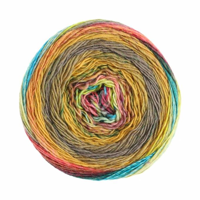 Gomitolo Finito 558 Kleur: Oker-Grijspaars-Petrol-Turquoise-Roze-Lila
