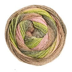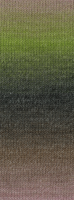Hoge kwaliteit bol van 60% Merino Scheerwol en 40% Polyacryl garen. Het kleurverloop heeft de kleuren Kaki - Lichtgroen - Donkergroen - Zwartgroen - Beige