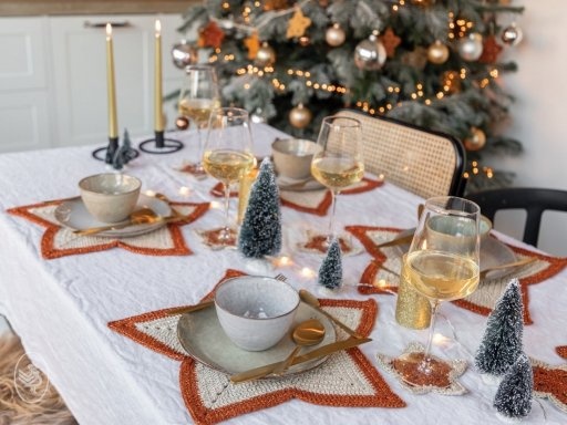 Gehaakt in ons favoriete garen voor Kerst items, Durable Glam, belooft deze set een echte eyecatcher te worden op jouw Kersttafel.