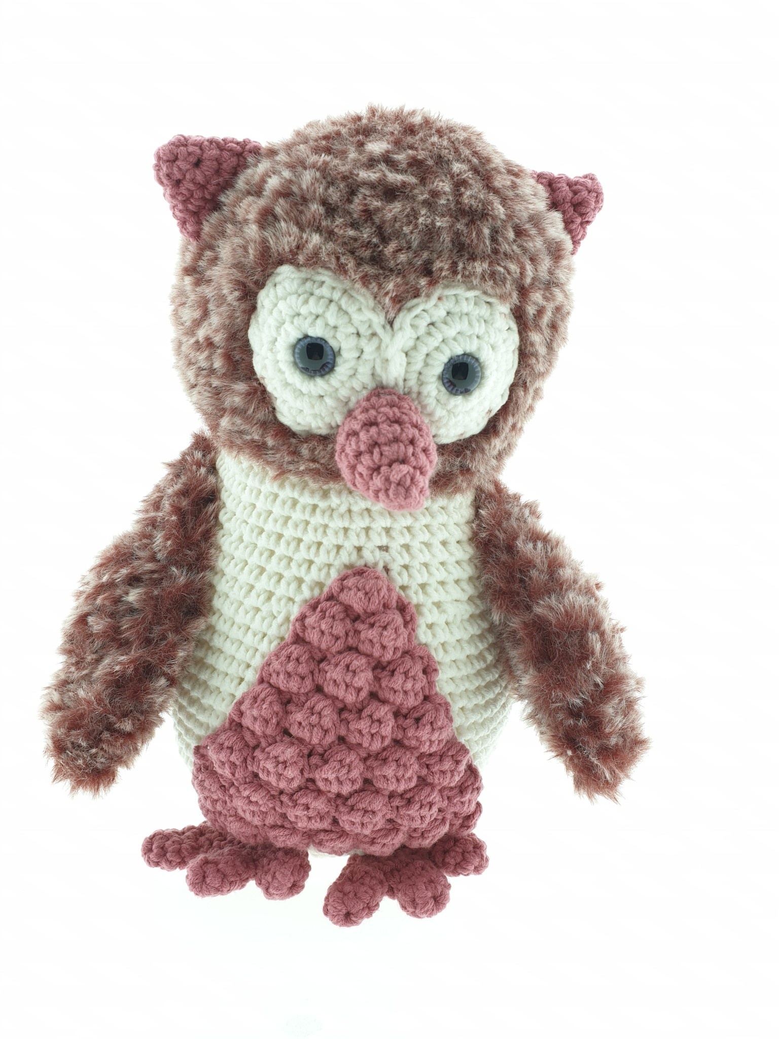 Dit is Uil Tippy, een vrolijke uil met een lekkere zachte knuffelbare vacht. Met zijn grote ogen bekijkt hij alles goed. Ik heb in zijn lijf een muziekdoosje gedaan, maar die kan je natuurlijk ook weglaten.