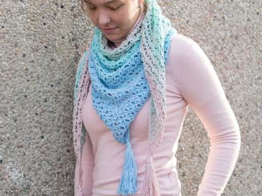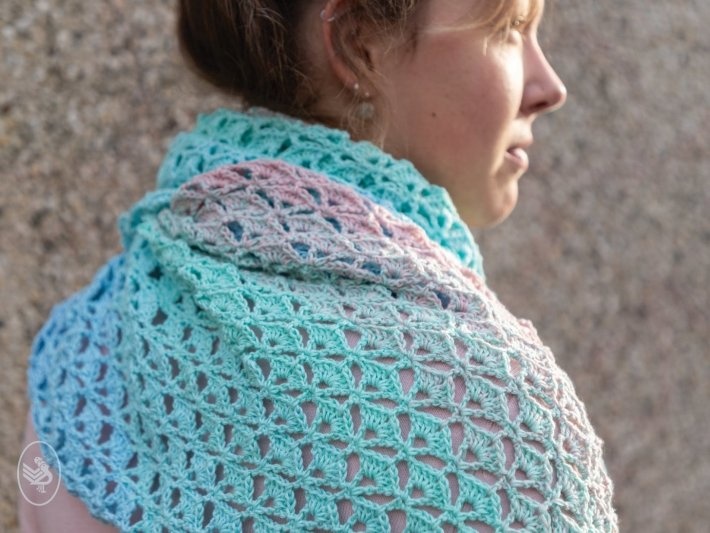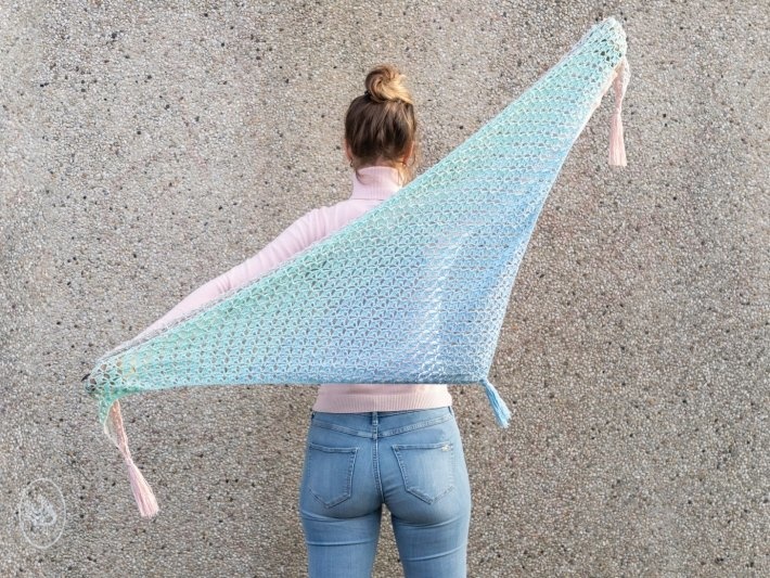 Een mooie driehoekshawl die je vanuit de onderst punt naar boven toe haakt.
