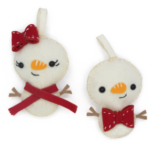 Met dit pakketje kunnen 2 sneeuwpop hangers van wolvilt gemaakt worden.