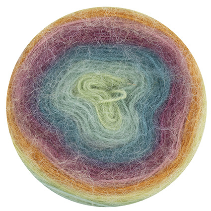 Knot limited edition cakegaren voor liefhebbers van uit één enkele knot gebreide sjaals, stola's, omslagdoeken en andere accessoires. Het geruwde of gekaarde garen Katia Kaleido is perfect voor uw volgende zelf gebreide of gehaakte sjaal.