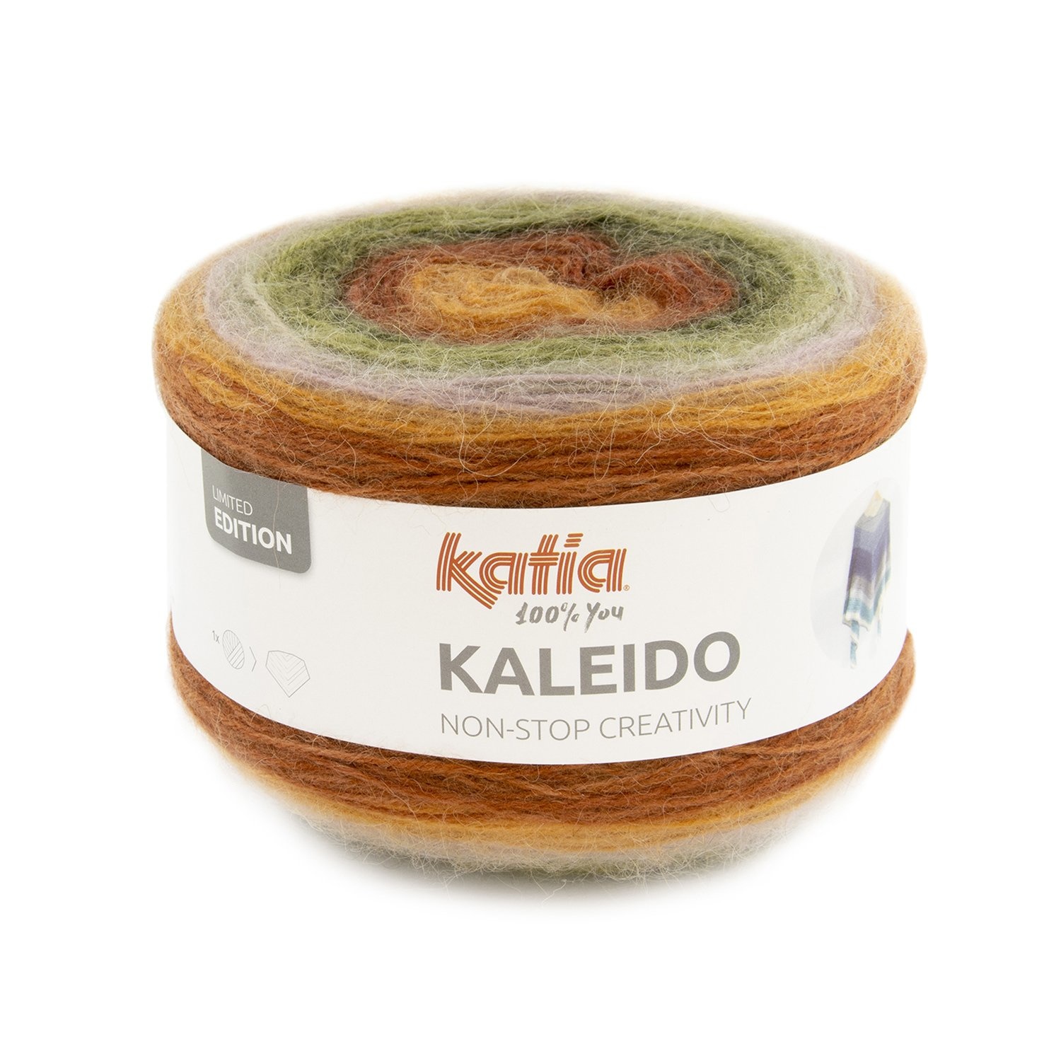 Knot limited edition cakegaren voor liefhebbers van uit één enkele knot gebreide sjaals, stola's, omslagdoeken en andere accessoires. Het geruwde of gekaarde garen Katia Kaleido is perfect voor uw volgende zelf gebreide of gehaakte sjaal.