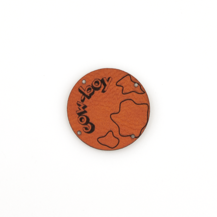 Leren label 'Cow boy' rond 35mm Chestnut - 2 stuks