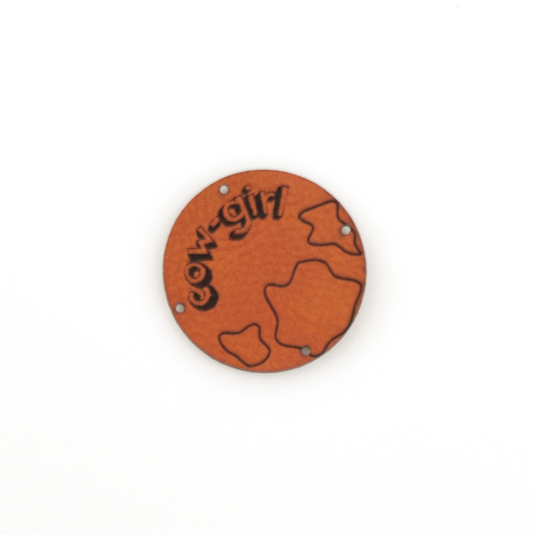 Leren label 'Cow girl' rond 35mm Chestnut - 2 stuks