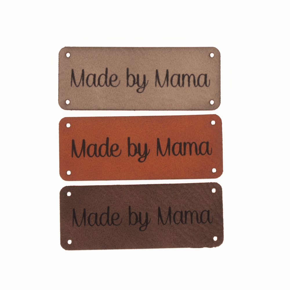 Het label is gemaakt van PU-kunstleer en is verkrijgbaar in verschillende kleuren en wasbaar tot 40c. Bevestig eenvoudig door de gaten in het label met naald en draad aan je werk te bevestigen. Met deze unieke labels maak je altijd iets speciaals. Alle leren labels zijn verkrijgbaar in verschillende kleuren. Bestel nu je eigen label met de tekst ‘Made by Mama’