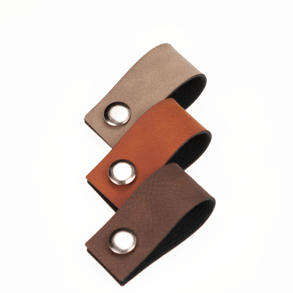Leren vouwbaar label zonder tekst in de maat 20mm bij 100mm. Bevestig eenvoudig als een lus met het bijgeleverde schroefbare sluiting. Verkrijgbaar in verschillende kleuren.