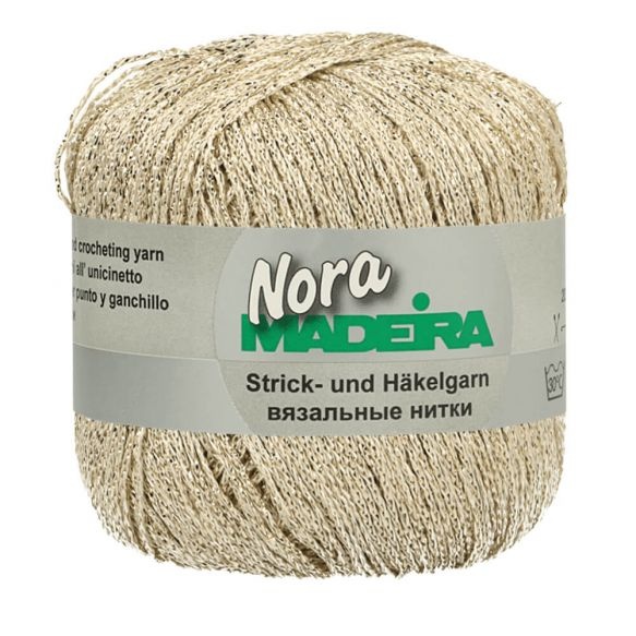 Madeira Nora is een gemetalliseerd haak- en breigaren dat verrassend zacht en soepel is. Het is gemaakt van 80% viscose en 20% gemetalliseerd polyester en glinstert erg mooi.