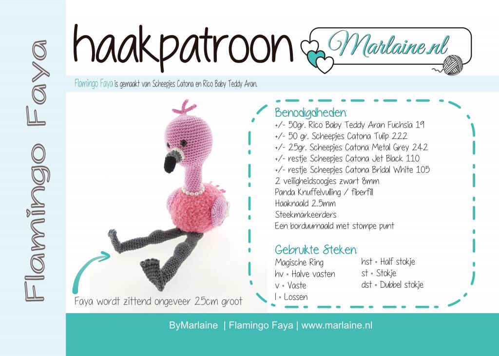 Haakpatroon van Flamingo Faya in een luxe gedrukt boekje. Volg het patroon stap voor stap voor deze leuke Flamingo van 25cm groot.