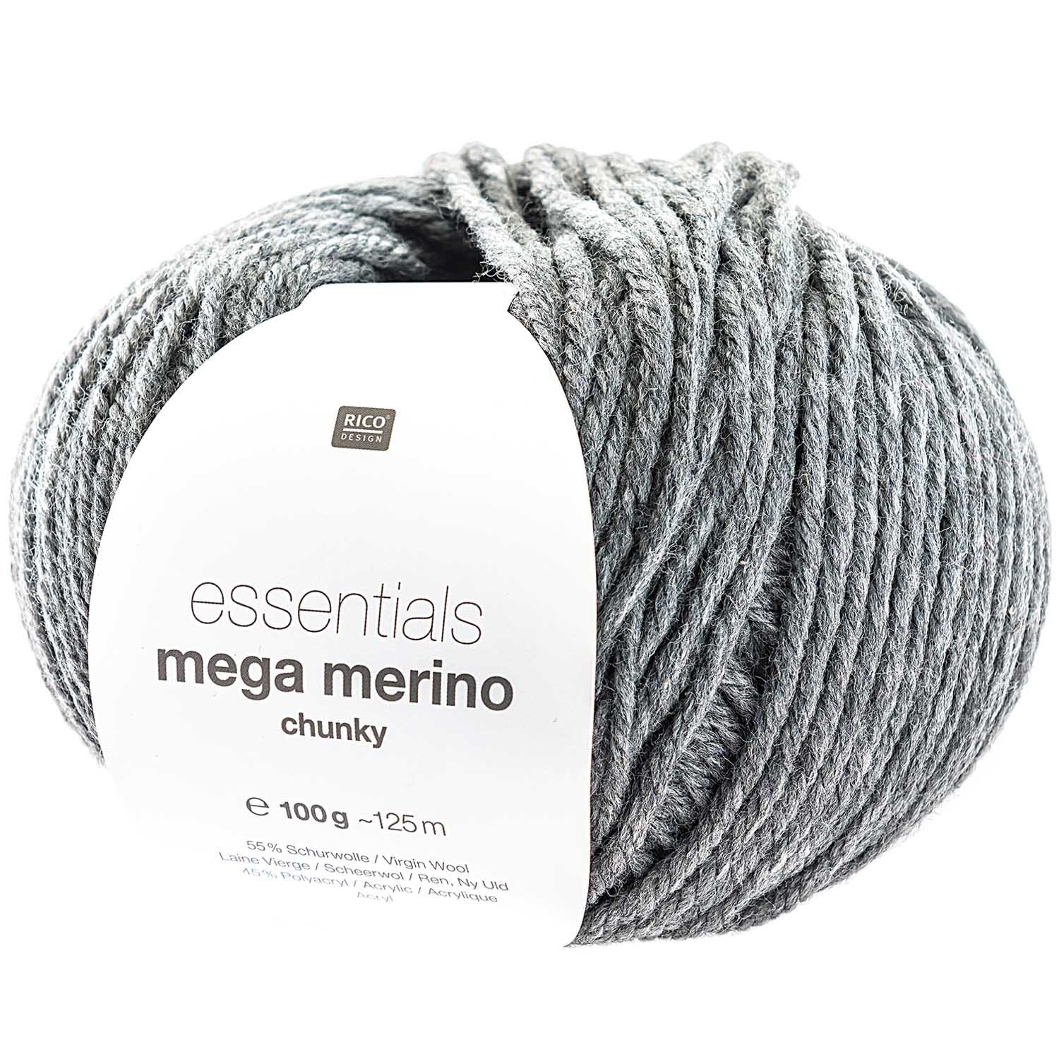 Rico Design Essentials Mega Wool Chuncky is een chunky en zacht garen van 55% merino wol en 45% acryl. Het garen heeft een robuust getwijnde look en voelt lekker stevig aan. De draad is perfect voor zowel breien als haken in projecten zoals truien, vesten