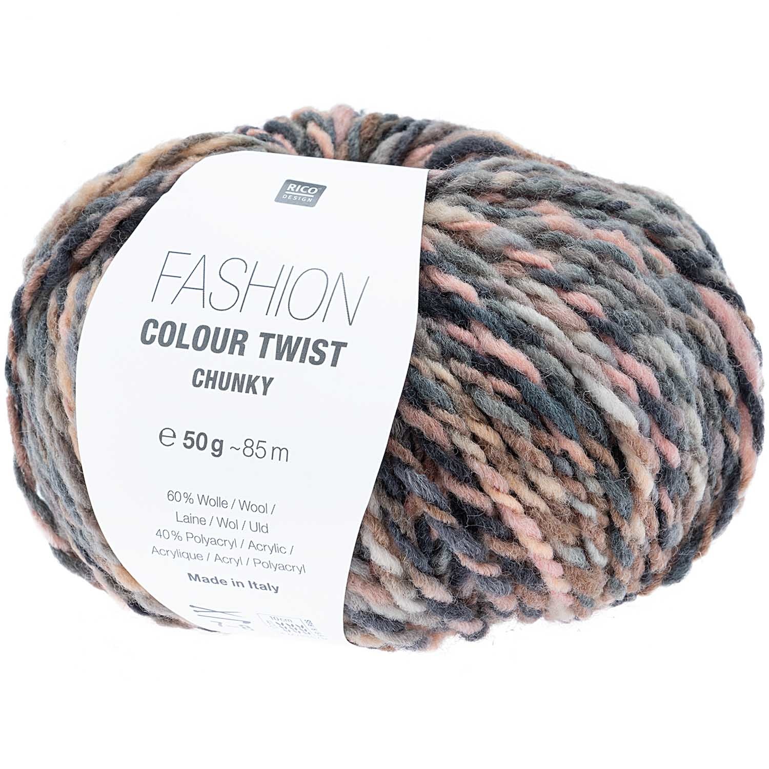 Fashion Colour Twist Chunky van Rico Design is een dik getwijnd garen van multicolour draden. Hierdoor ontstaat een verrassend effect.