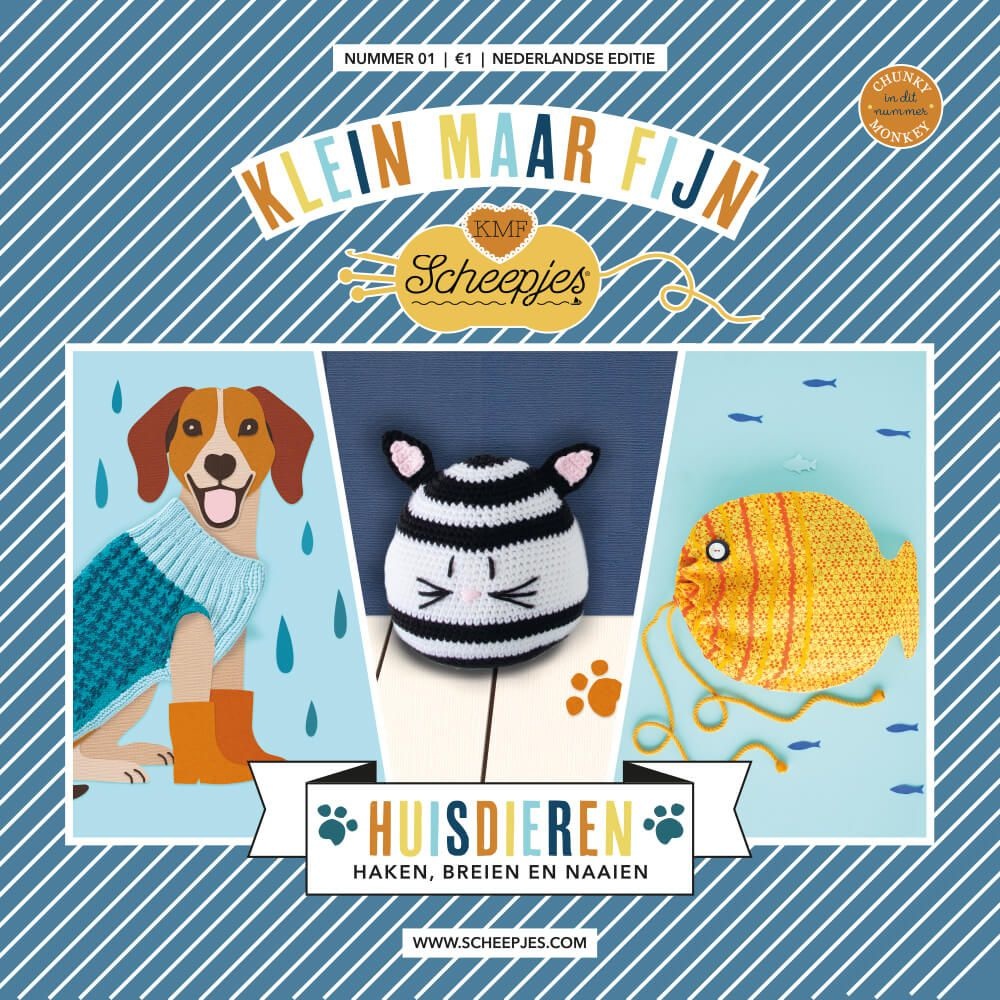 De eerste editie van Klein Maar Fijn is volledig toegewijd aan onze huisdieren. Het zijn onze vriendjes en trouwe leden van het gezin, daarom verdienen ze een eigen editie. Met drie beestachtig leuke projecten, ontworpen door Jo Allport, Maja Nowicka en Simy’s Studio. Deze eerste editie bevat patronen van een prachtig gebreid jasje voor jouw hondenkind, een gehaakte deurstopper in de vorm van een kat en de eigenzinnige, genaaide vissentas. Laat je inspireren en ga aan de slag!