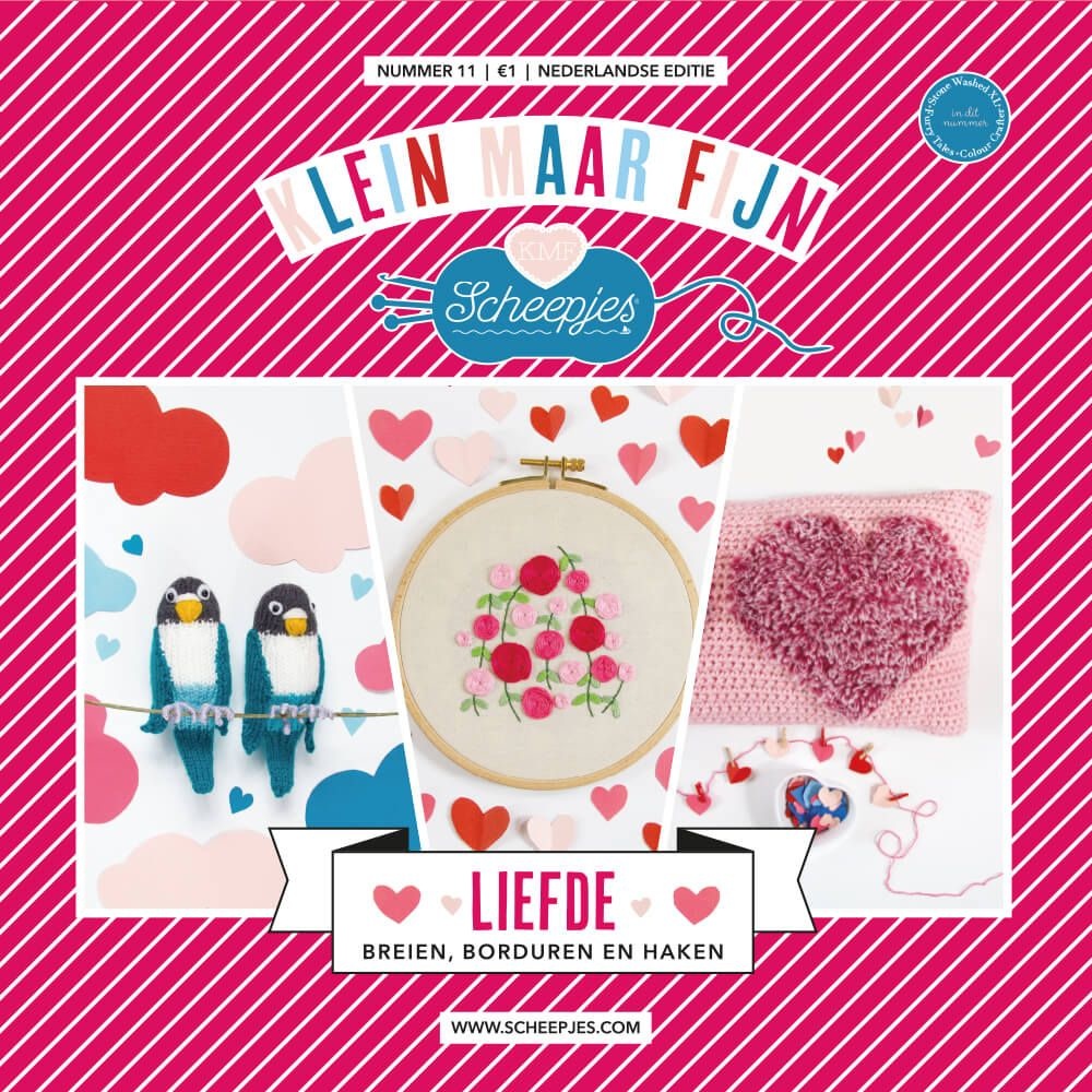 De liefde staat centraal in de 11e editie van Scheepjes' Klein Maar Fijn - Liefde! Van gebreide tortelduifjes en de geborduurde Smell The Roses Hanger tot het gehaakte Love2 kussen; deze kleine projecten zijn als cadeau een groots gebaar waarmee eenieder een geliefde kan verrassen!