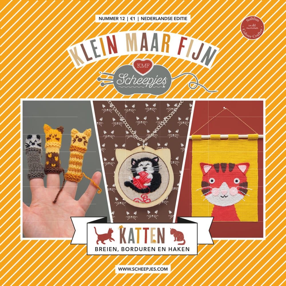 In de 12e editie van Scheepjes Klein Maar Fijn staan onze geliefde katten centraal! Van gebreide vingerpopjes, de geborduurde Crafty Cat ketting, de gehaakte Purrfect Hanger tot het bonus haakproject Kitty Cat speelhengel; deze kleine projecten brengen een ode aan de speelse, spinnende, pluizige viervoeters! Bovendien hebben crafters geen negen levens nodig om alle projecten te maken. Een creatief weekend is voldoende!