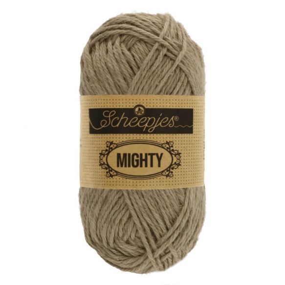 MIGHTY bestaat uit een mix van 32% jute en 68% katoen. Een bol Scheepjes MIGHTY weegt 50 gram en heeft een looplengte van 80 meter (garendikte Sport). De aanbevolen naalddikte is 4.00-4.50mm. Verkrijgbaar in 11 neutrale kleuren.
