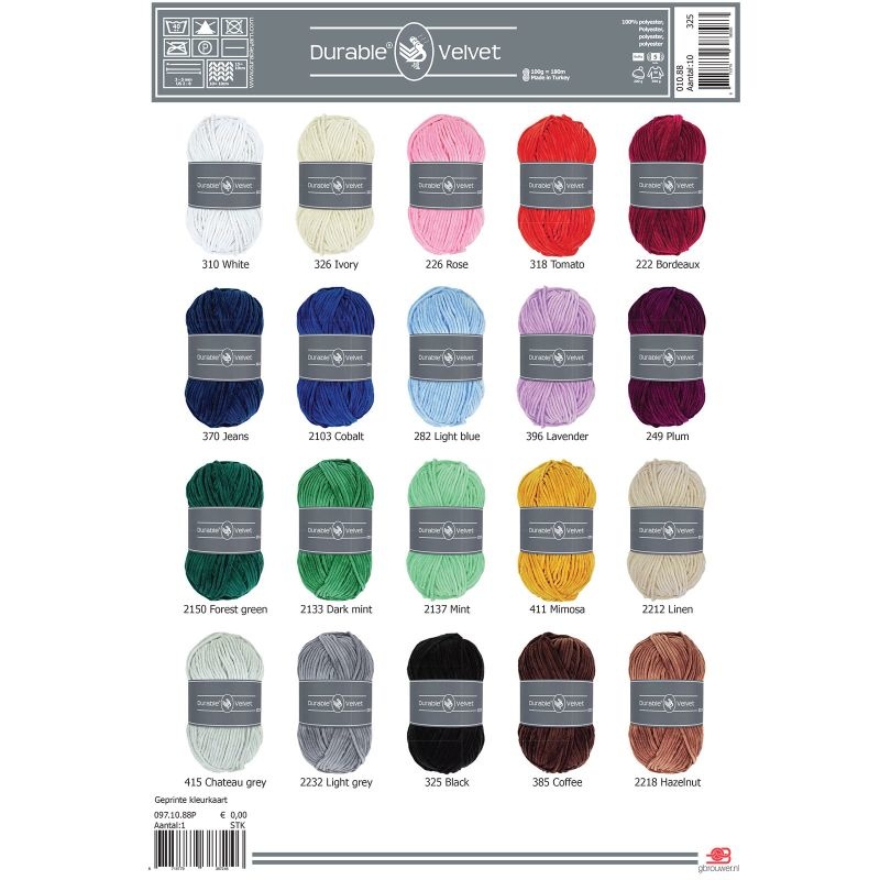 Het wordt knuffelen met de Durable Velvet. Het is een chenille garen wat gekenmerkt wordt door een zeer zachte en soepele touch. Door dit knuffelbare karakter is dit garen perfect te gebruiken voor projecten als knuffels, kussens, dekentjes en vele andere items voor het interieur. Durable Velvet is superzacht door de hoge vezeldichtheid en heeft een mooie luxe uitstraling.