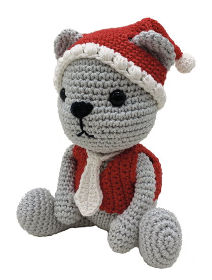 Deze lieve winterbeer wordt gemaakt van katoenen kwaliteitsgaren.De beer wordt ongeveer 24 cm groot (zittend 16 cm).